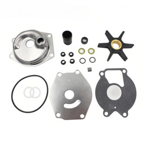 This kit includes the water pump housing, impeller, face plate, key, gaskets, seals, and related hardware for a standard pump replacement. You will need your own tools and fresh gearcase oil.