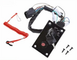 This is a complete Single Ignition Key Switch Panel – Fits Suzuki Outboard Engines (Replaces 37100-96J24, 37100-96J27), designed for dashboard mounting on models from 2005 and newer. The assembly includes an ignition switch, emergency stop lanyard, warning buzzer, and mounting hardware for a comprehensive installation.